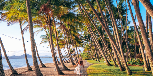 Palm Cove ist ideal, um Natur und Genuss zu verbinden: Von hier aus lassen sich Ausflüge zum Great Barrier Reef starten, Wanderungen in den Daintree Rainforest unternehmen oder mit der Skyrail-Seilbahn hoch über den Baumwipfeln nach Kuranda fahren. Auch die nahegelegenen Atherton Tablelands mit ihren Wasserfällen und Bergseen sind gut erreichbar. Dennoch bleibt Palm Cove ein Ort der Zurückhaltung und Leichtigkeit. Kein Lärm, keine Hektik, keine Eile – nur das Meer, die Palmen, das Licht. Es ist ein Platz, an dem man nicht nur Urlaub macht, sondern wirklich ankommt, durchatmet und sich mit dem sanften Rhythmus des tropischen Nordens verbindet.