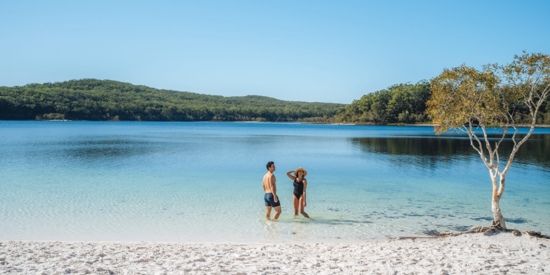 Sie verlassen das glasklare Korallenmeer von Lady Elliot Island und reisen weiter zur größten Sandinsel der Welt: K’gari (Fraser Island) – ein UNESCO-Weltnaturerbe voller Magie. Die Insel ist ein Mosaik aus Regenwald, Dünen und türkisfarbenen Süßwasserseen. Schon bei der Ankunft am Steg lässt sich die besondere Stimmung spüren: sanftes Licht, flirrende Hitze über dem Sand und das Rauschen des Meeres, das nie ganz verstummt. Ihr Zuhause für die kommenden zwei Nächte ist das Kingfisher Bay Resort, eingebettet in die Natur. Genießen Sie den Nachmittag in Ruhe – vielleicht am Strand, vielleicht mit einem kühlen Drink in der Sunset Bar mit Blick auf einen der schönsten Sonnenuntergänge Queenslands.