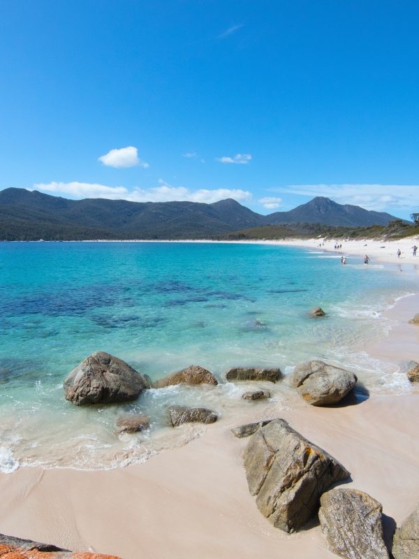 Die Freycinet Peninsula ist eine dramatische Landzunge, die von einem rosafarbenen Granitgebirge, den Hazards, dominiert wird. Ein Großteil der Halbinsel mit ihren malerischen, weitläufigen Buchten mit weißen Sandstränden wie der berühmten Wineglass Bay ist als Freycinet National Park ausgewiesen.